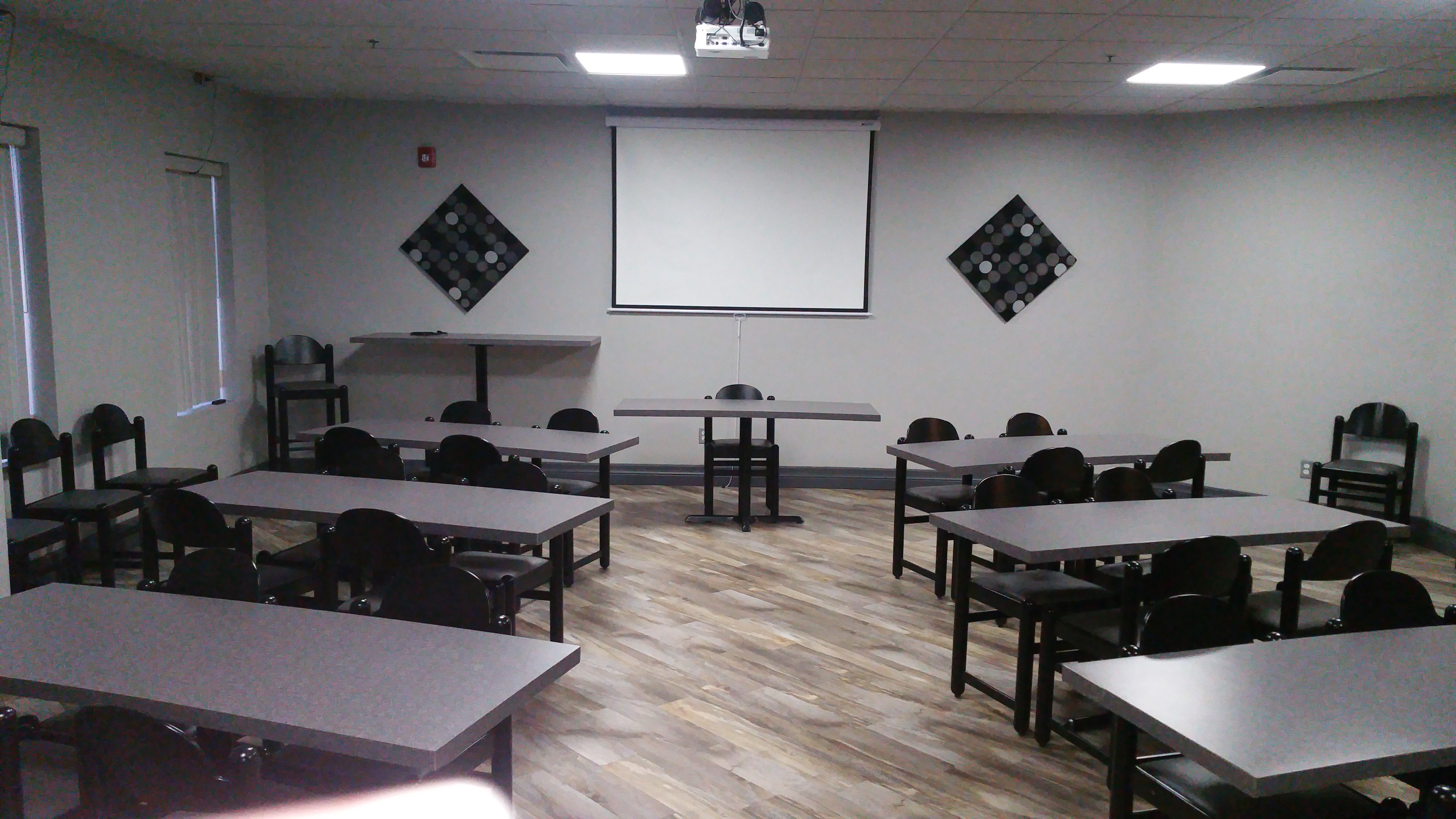 - Use of ceiling-mounted projector and projector screen